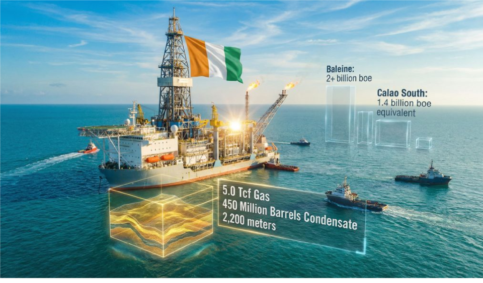 The discovery, named Calao South, confirms, Eni says, the potential of the Calao channel complex that includes also the Calao discovery and represents the second largest in the country after Baleine, with estimated volumes of up to 5.0 Tcf of gas and 450 million barrels of condensate (approximately 1.4 billion barrels of oil). Eni said the discovery was made in high-quality Cenomanian sands.